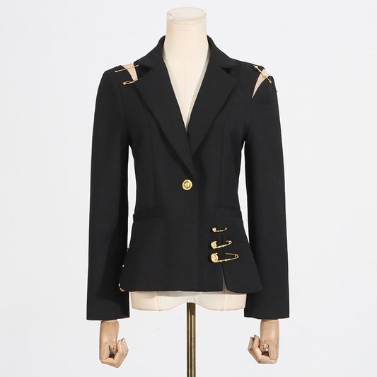 Summer New Mesh Splicing Pin Decorated Long Sleeve Slimming Fitted Small Blazer Jacket for Women Trendy