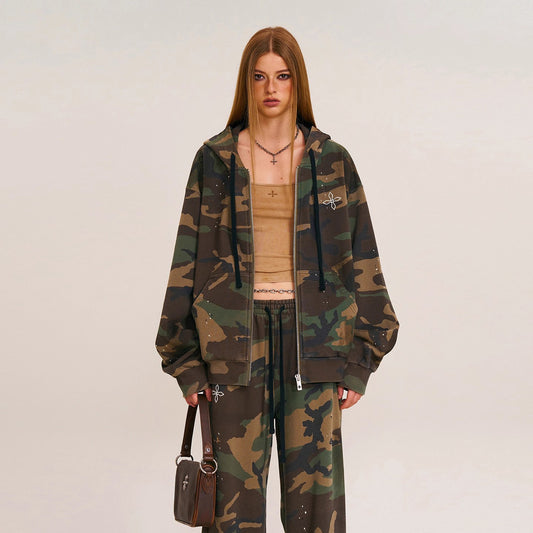 SMFK Cross Statue Oversized Zip-Up Hoodie CH005S1/DK/CF Embroidered Cotton Casual Open Front Hoodie