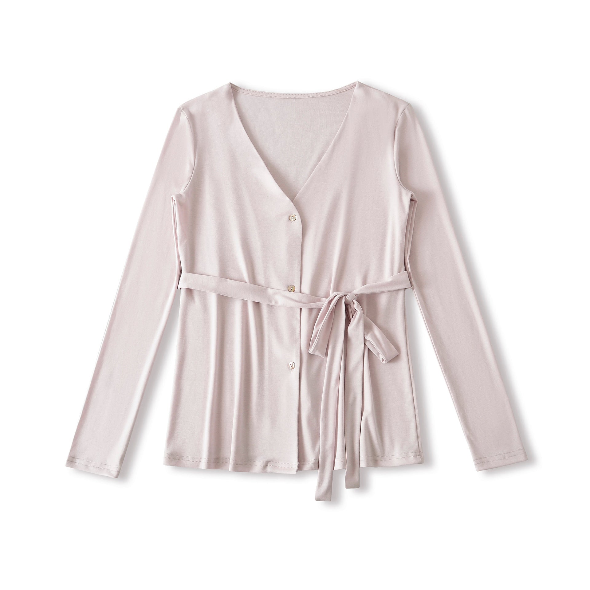 V-neck long sleeved tied waistband Tencel long sleeved casual cardigan jacket